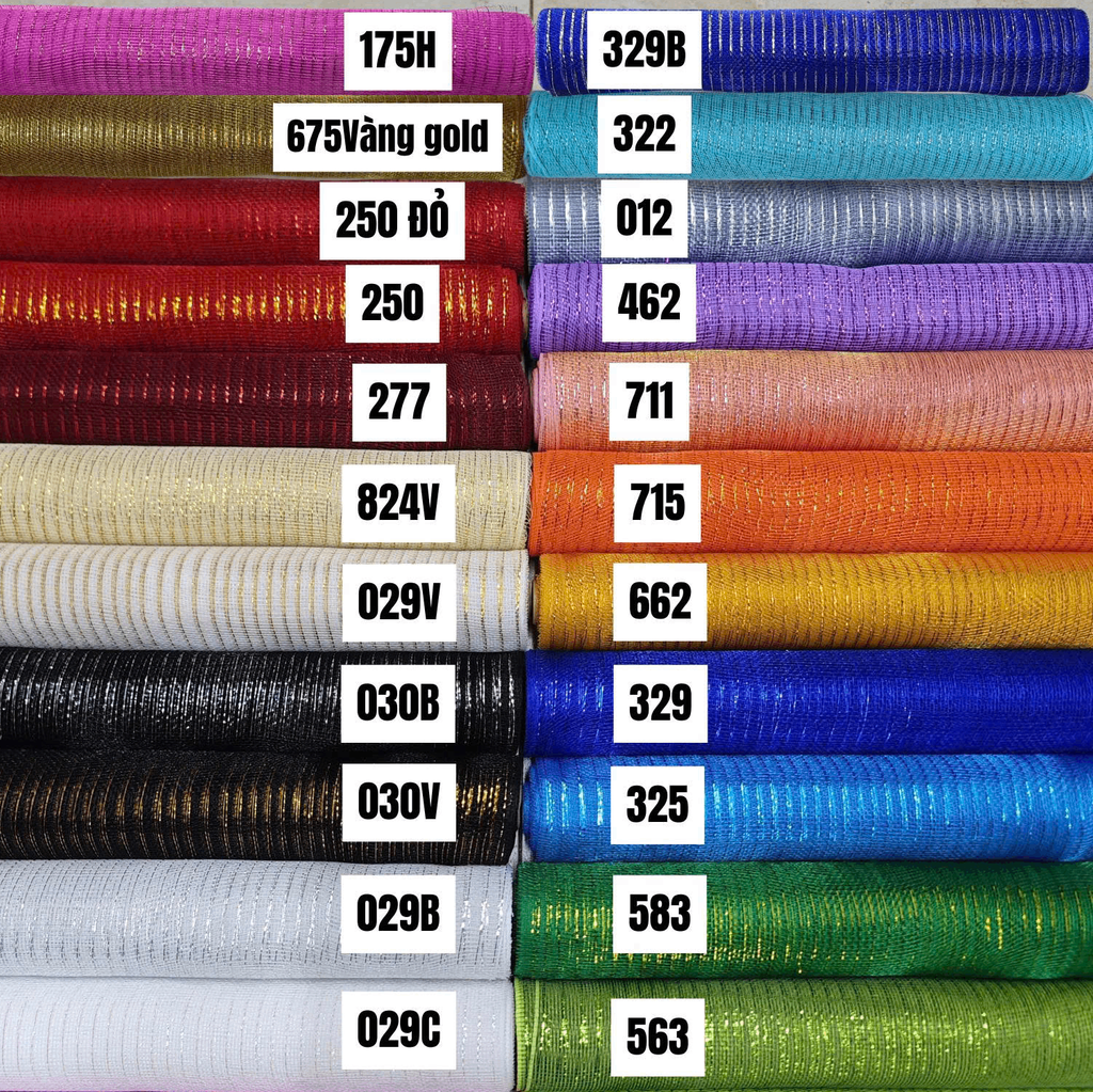 Đặc tính: Lưới kim tuyến sợi đều, ánh kim đẹp, không rụng kim, giữ form tốt